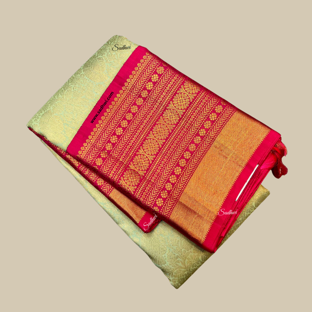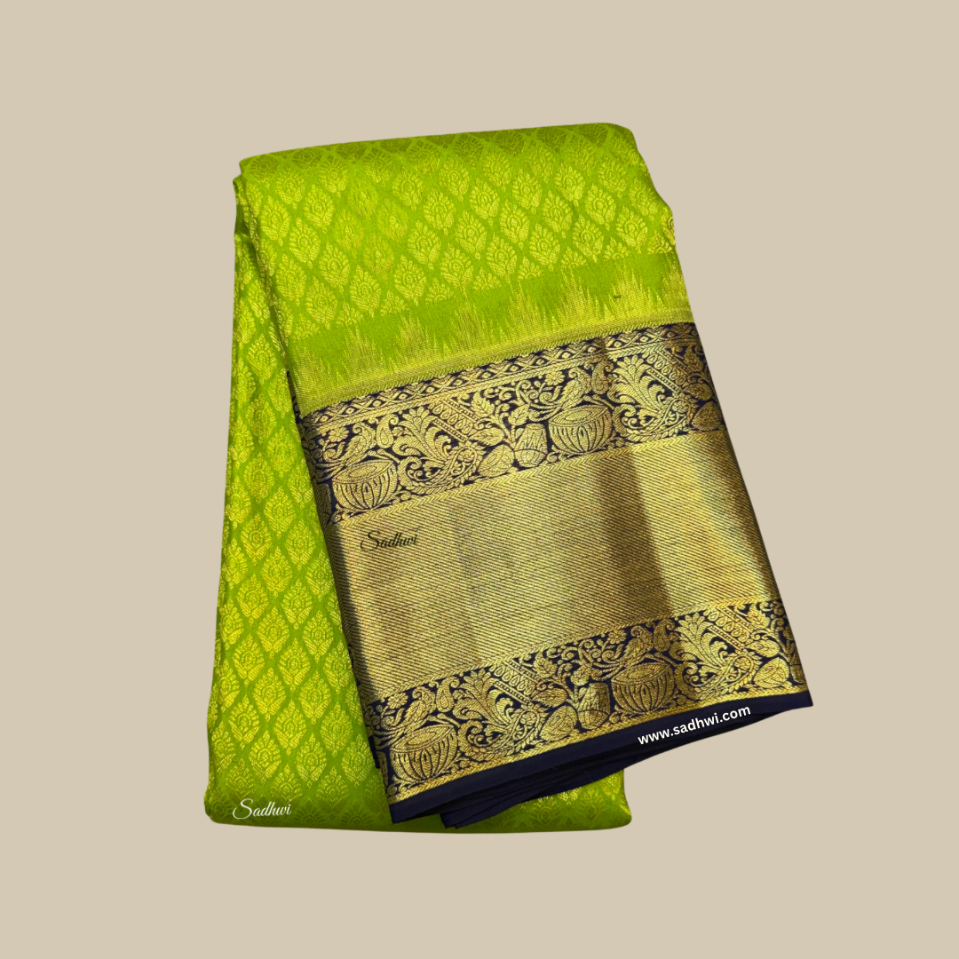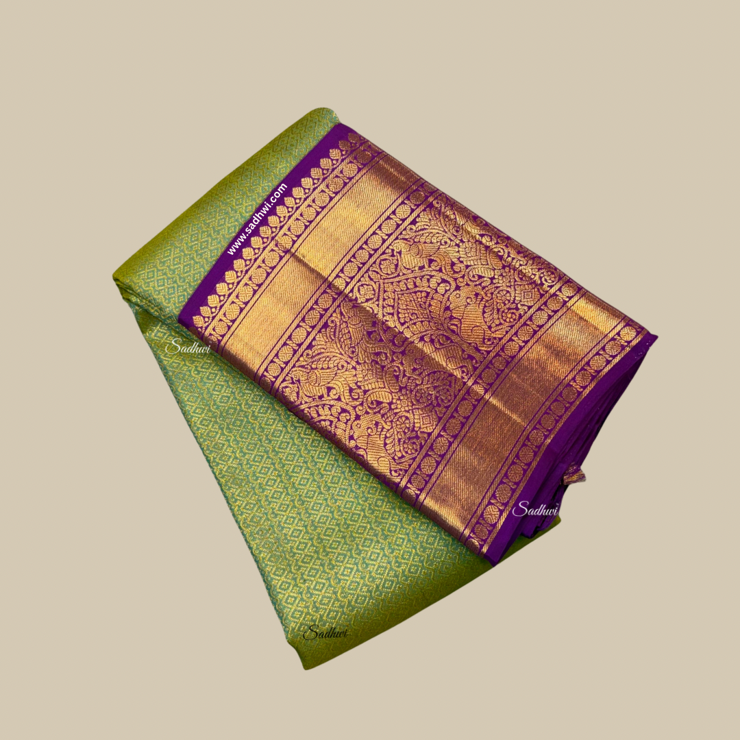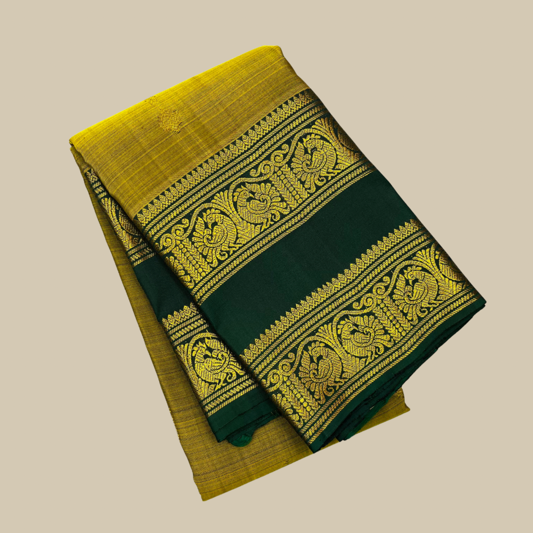 Mehendi Green Gap Border Pure Kanchipuram Silk Saree