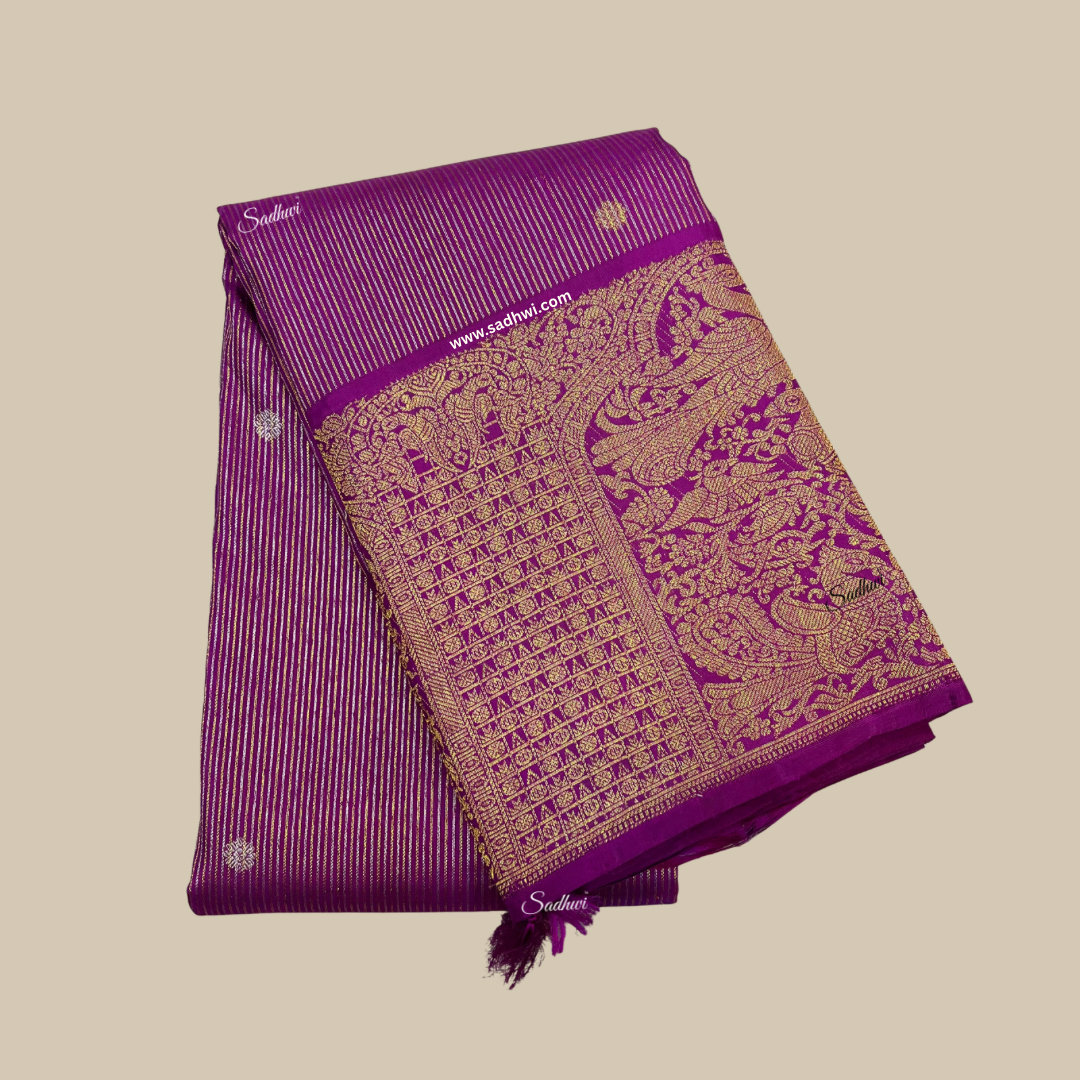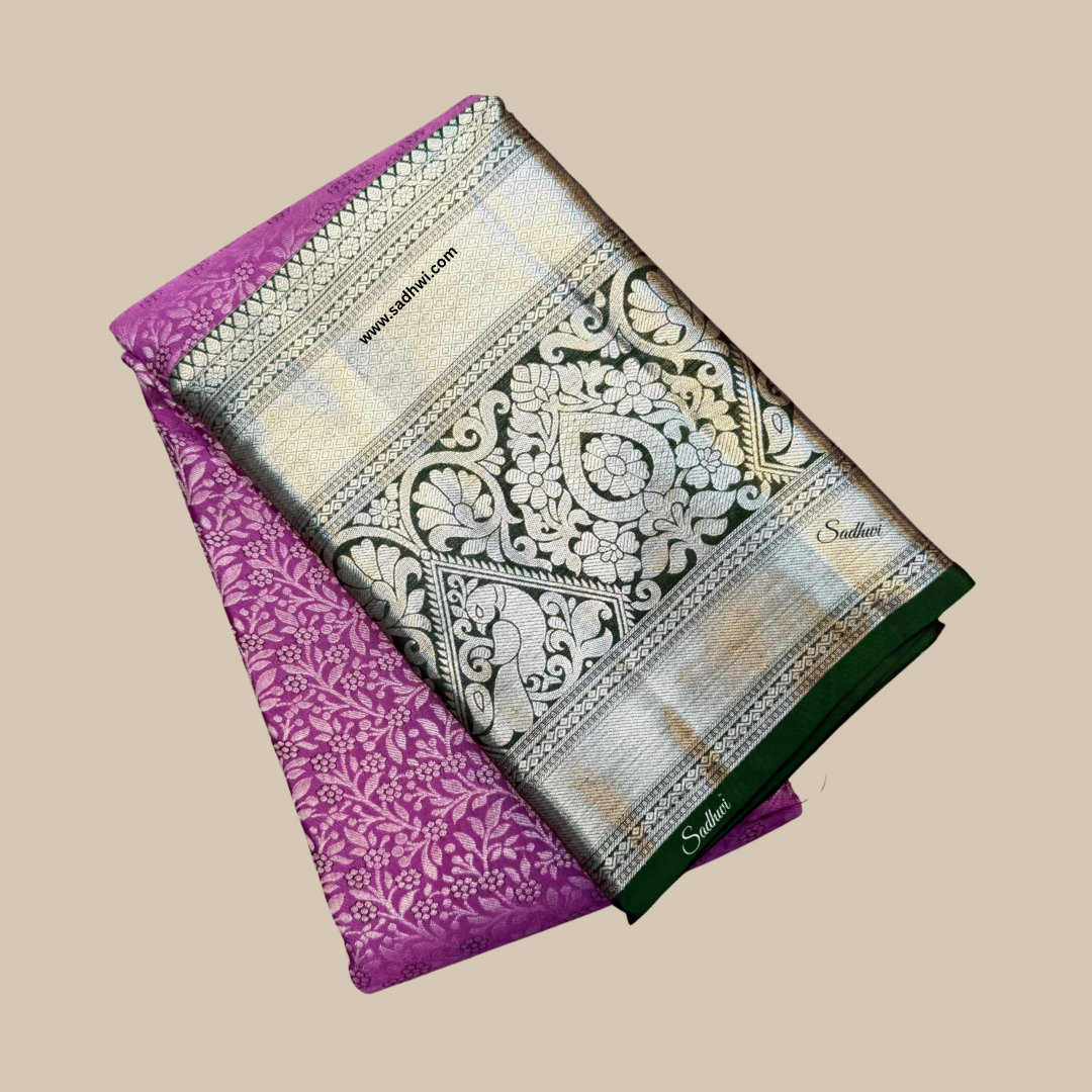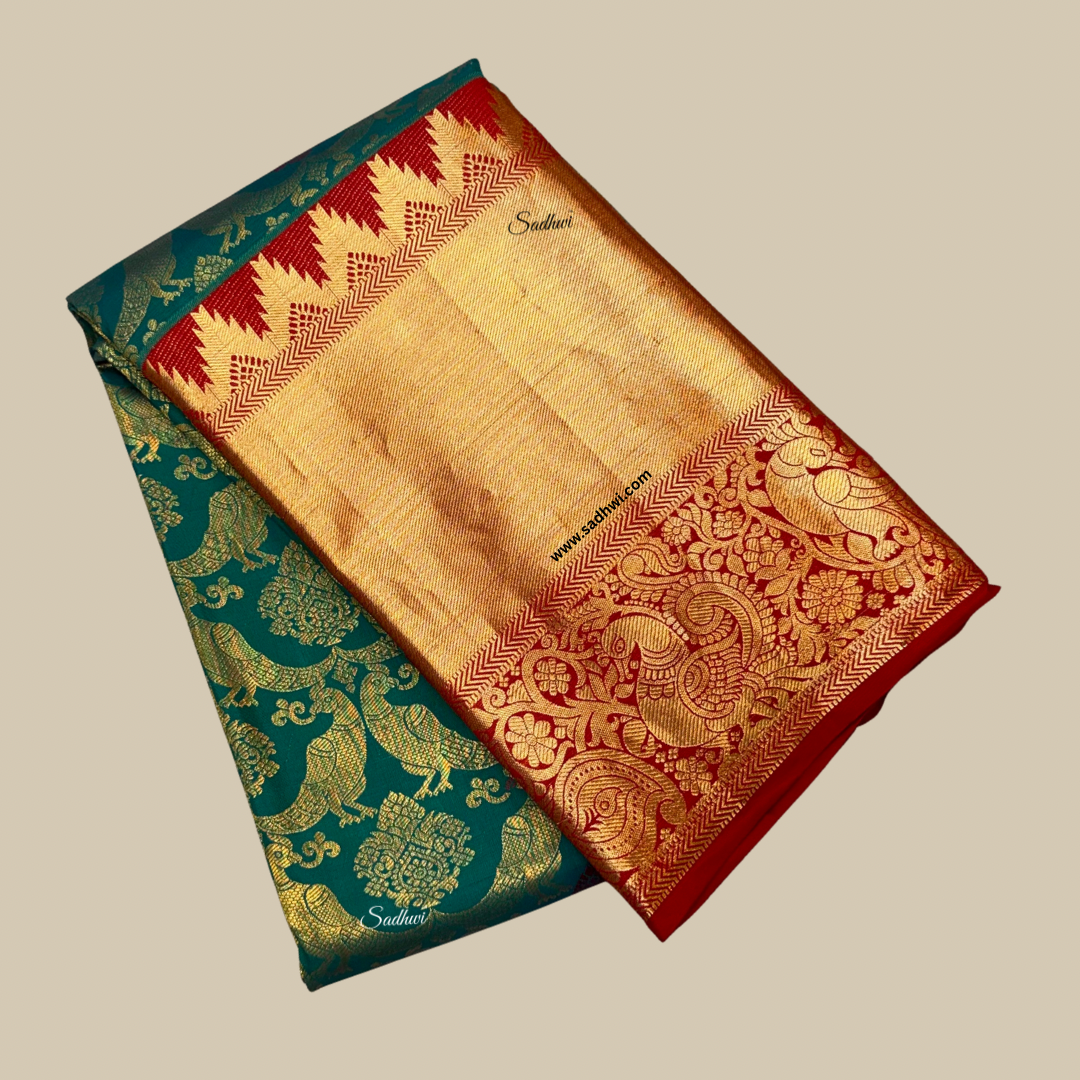 Mehendi Green Gap Border Pure Kanchipuram Silk Saree