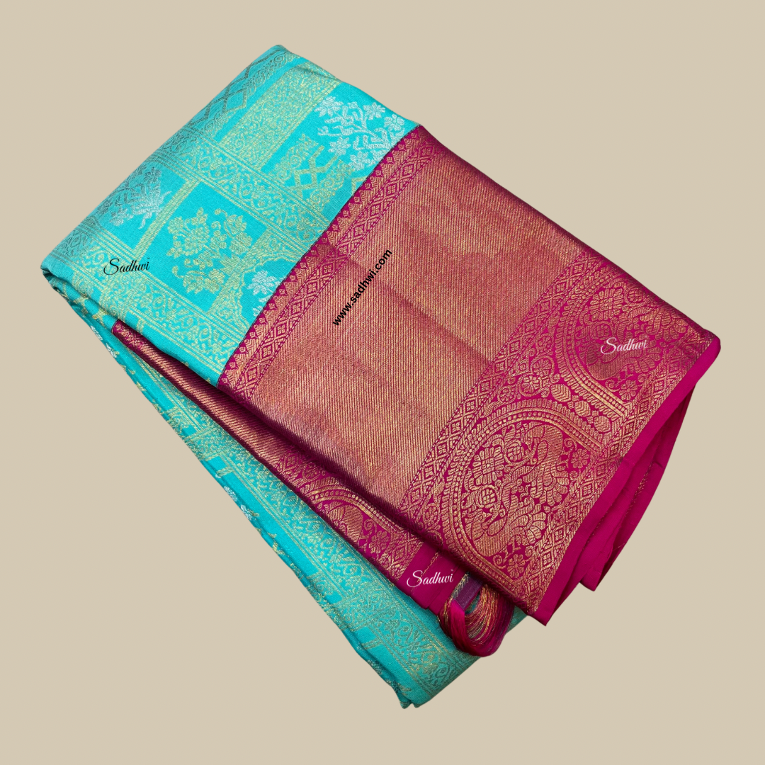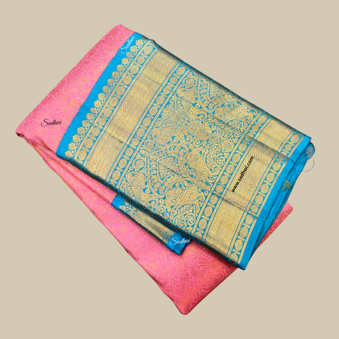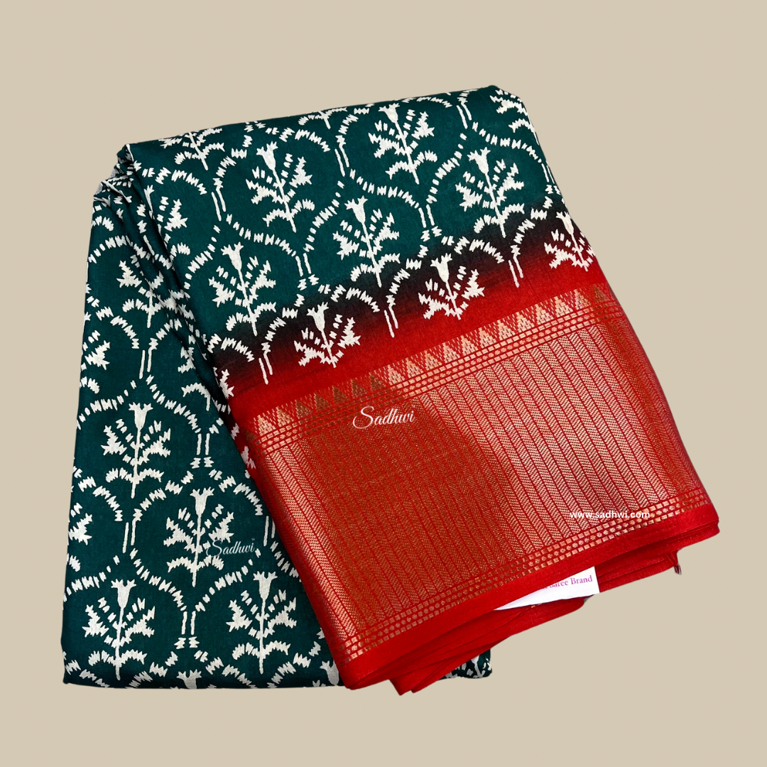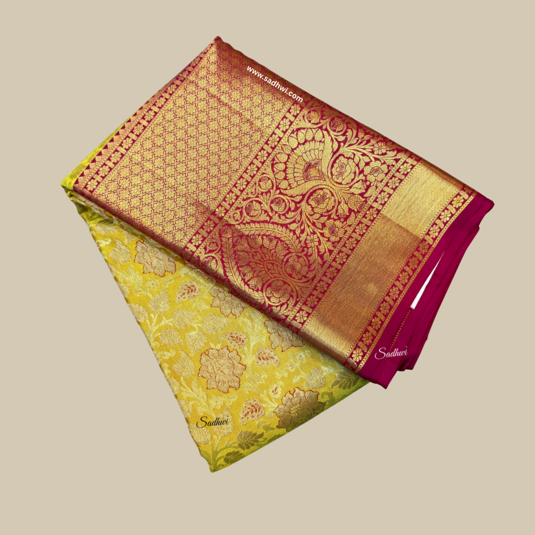 Mehendi Green Gap Border Pure Kanchipuram Silk Saree