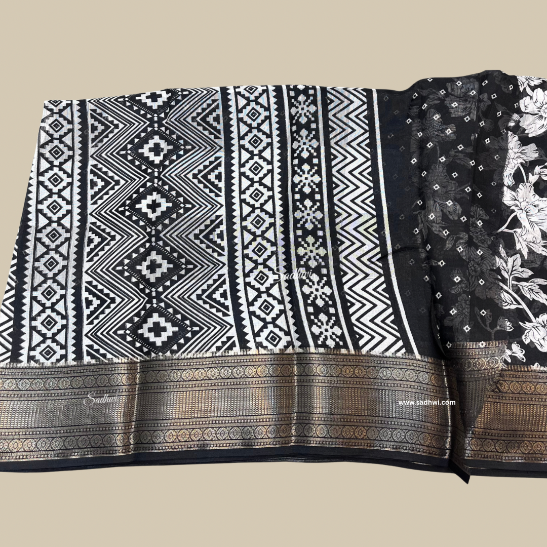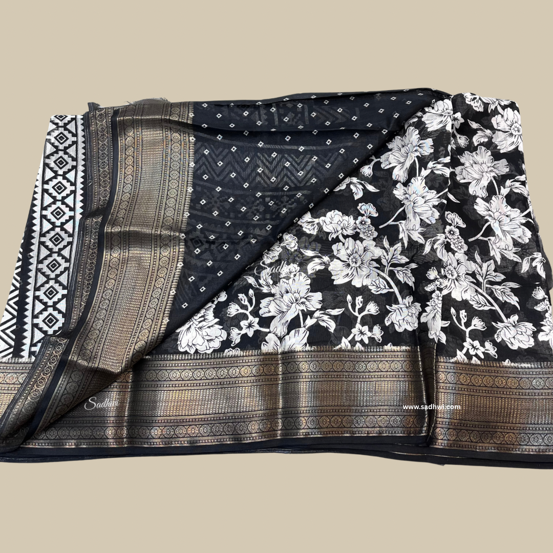 The Black Floral Printed Blended Cotton Silk Saree is a perfect harmony of tradition, comfort, and style. Crafted from a fine blend of cotton and silk, it combines the breathability of cotton with the gentle sheen of silk, offering both elegance and ease. The classic black base adds a bold, timeless appeal, while the delicate floral prints bring softness and grace to the overall look. Lightweight and easy to drape, this saree is ideal for office wear, casual outings, or understated festive occasions. Paired with a matching blouse piece, it offers a refined, versatile ethnic ensemble for any wardrobe.
