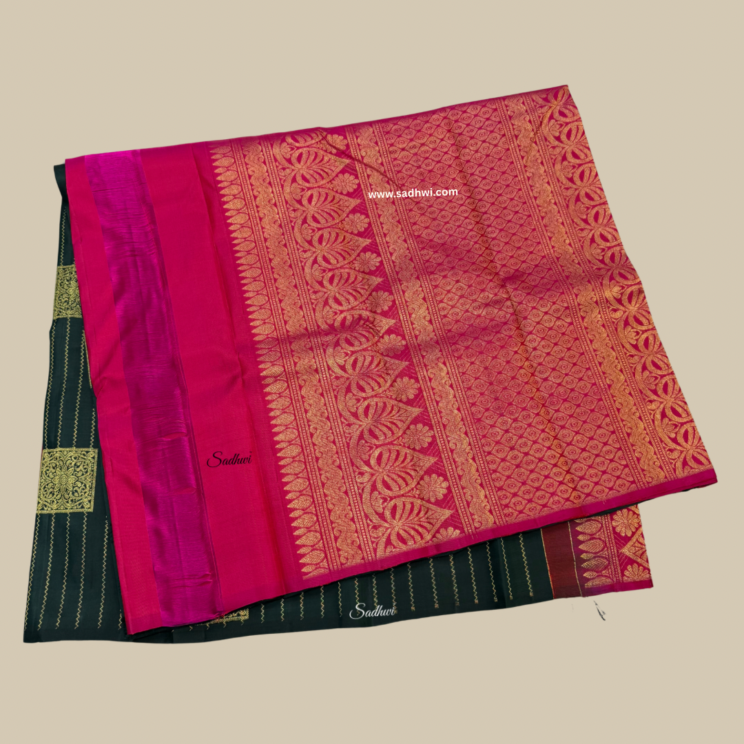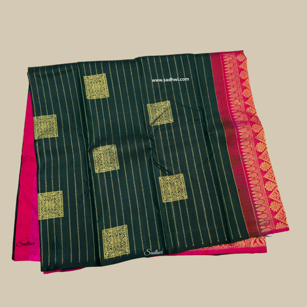 Bottle Green Borderless Lines Pure Kanchipuram Silk Saree