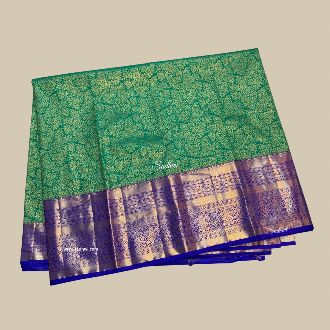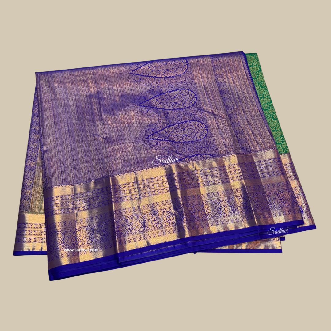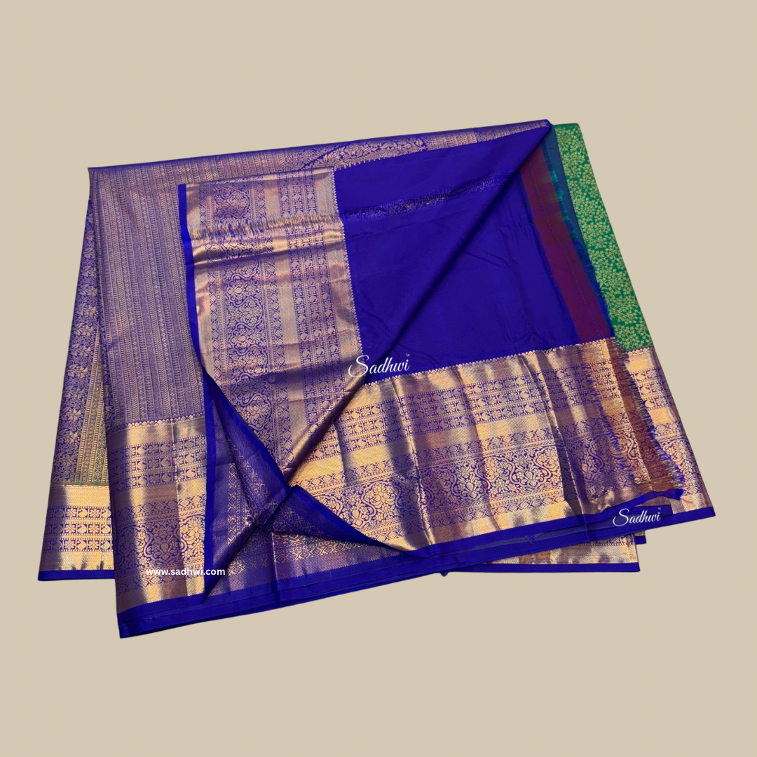 Bottle Green With Royal Blue Kanchipuram Silk Saree