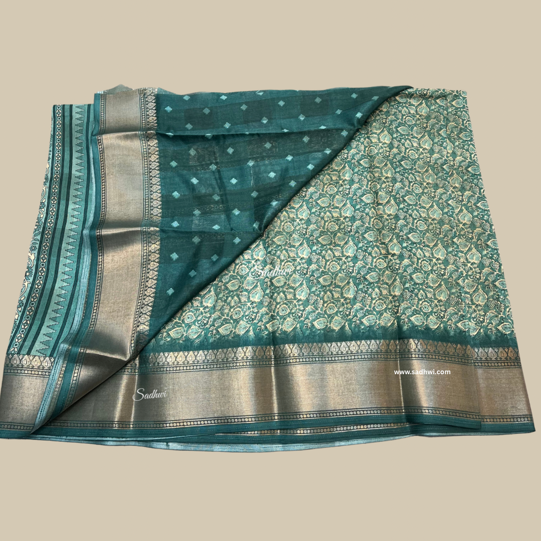 Add effortless charm to your everyday style with this Deep Cyan Cotton Saree featuring a printed border. Made from breathable, soft cotton, it offers all-day comfort with a graceful fall. The striking deep cyan hue is complemented by the subtle printed border, making it a perfect choice for casual outings, office wear, or daytime events. Simple, elegant, and easy to drape—this saree is a must-have for your daily ethnic collection.