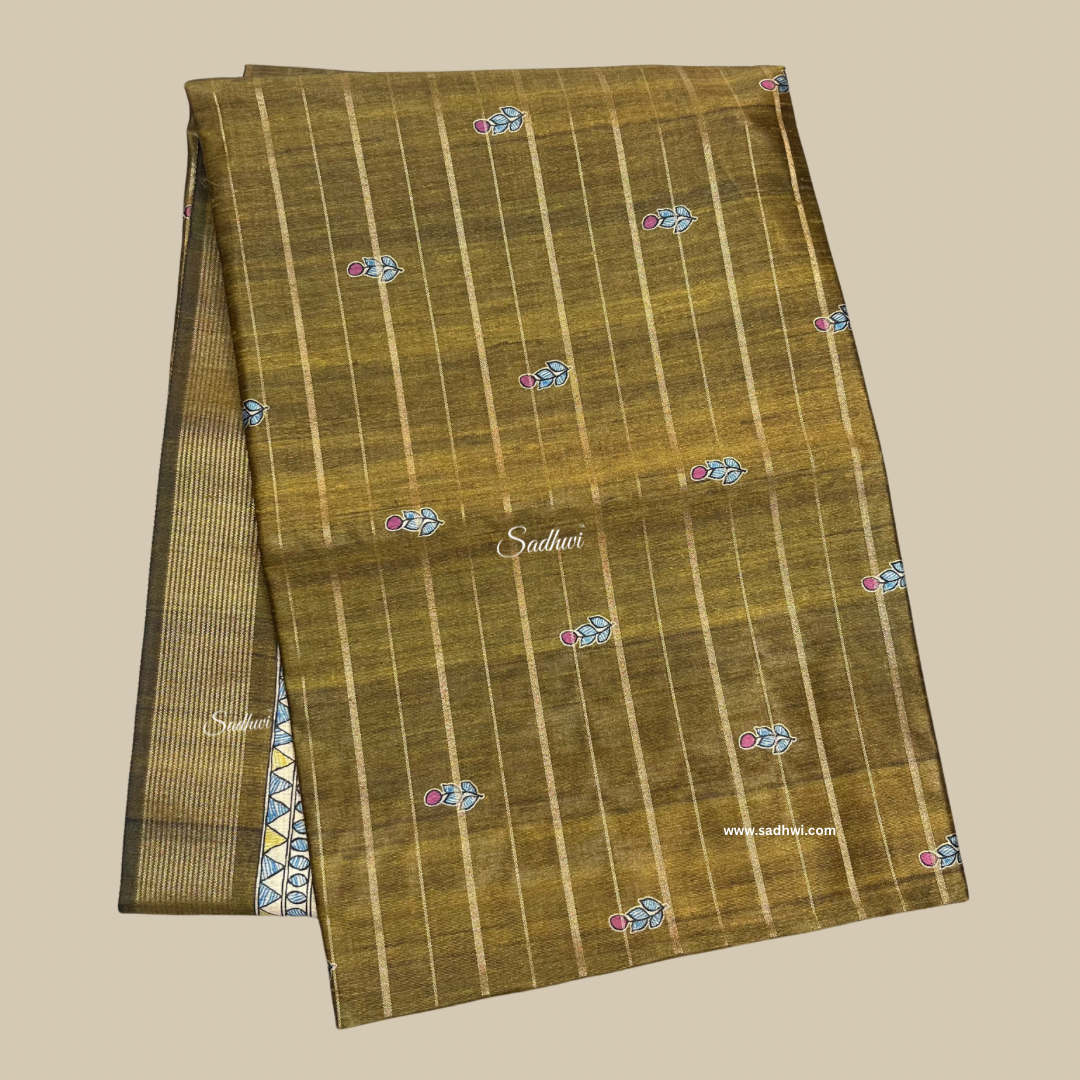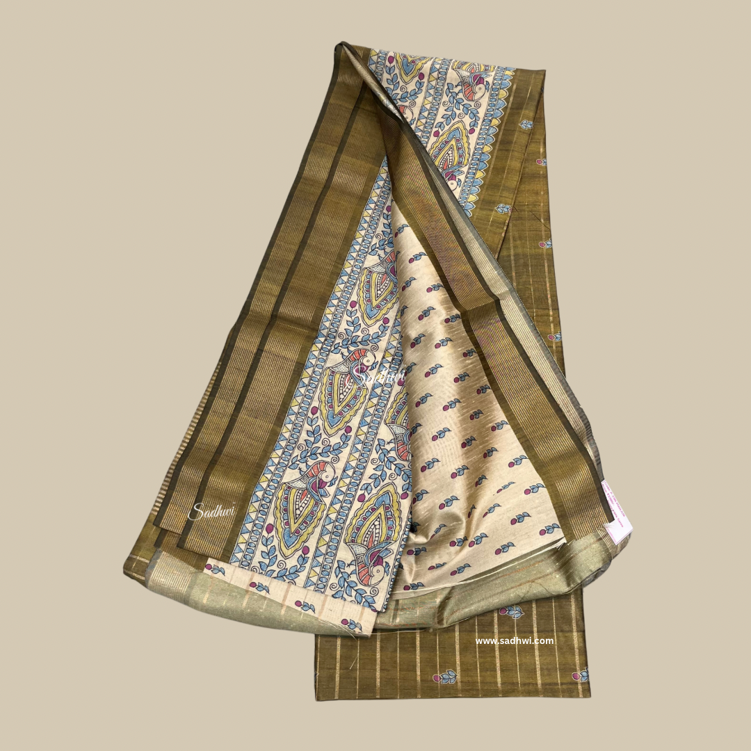 Elevate your ethnic wardrobe with this elegant Green Tussar Silk Saree, featuring a beautifully printed Kalamkari border that adds a touch of traditional artistry. Crafted from rich, textured tussar silk, this saree combines natural charm with sophisticated design, making it perfect for festive occasions, cultural gatherings, or graceful everyday wear. Lightweight and breathable, it drapes effortlessly and offers timeless appeal.