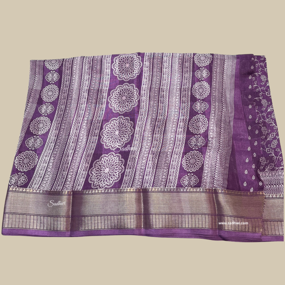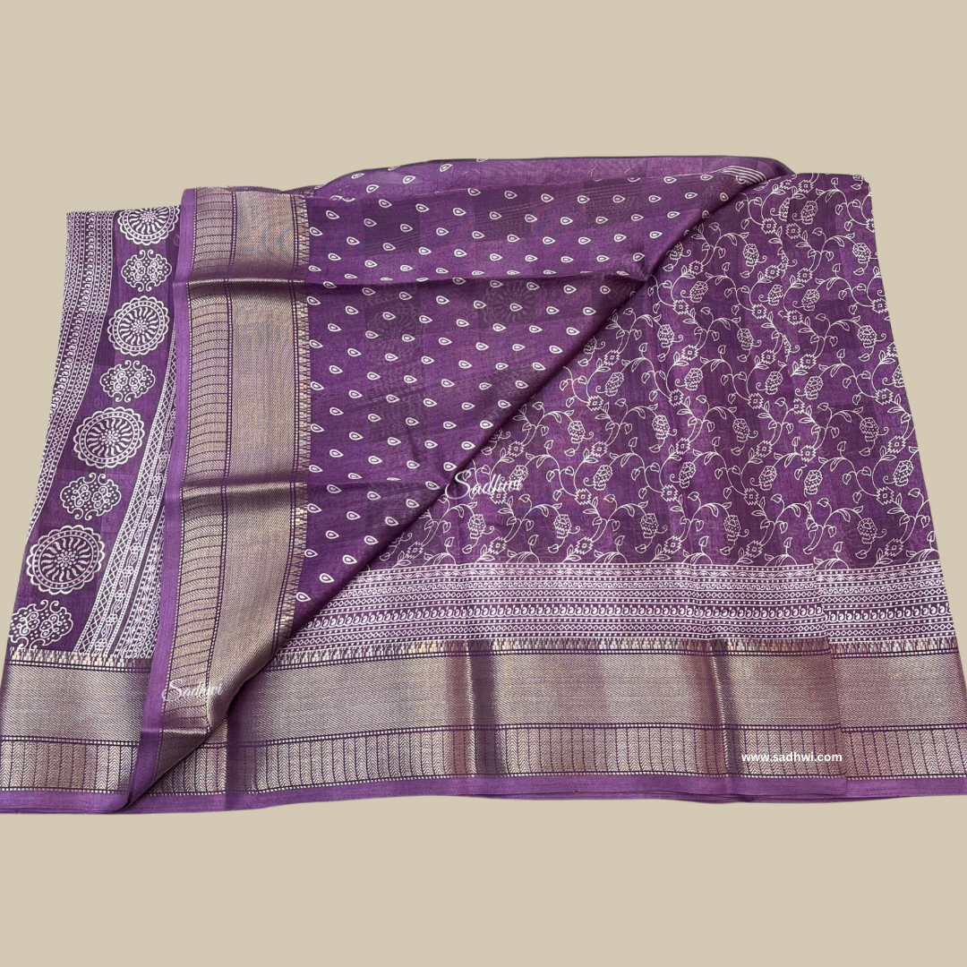 The Iris Purple Printed Blended Cotton Silk Saree is a graceful fusion of comfort and sophistication. Made from a premium blend of cotton and silk, it offers the breathability of cotton with the subtle sheen of silk, making it perfect for both casual and semi-formal occasions. The rich iris purple hue adds a touch of royalty and charm, beautifully complemented by elegant printed motifs that enhance its timeless appeal. Soft, lightweight, and easy to drape, this saree ensures all-day comfort with effortless style. Paired with a matching blouse piece, it’s an ideal choice for those who appreciate understated elegance with a modern touch.