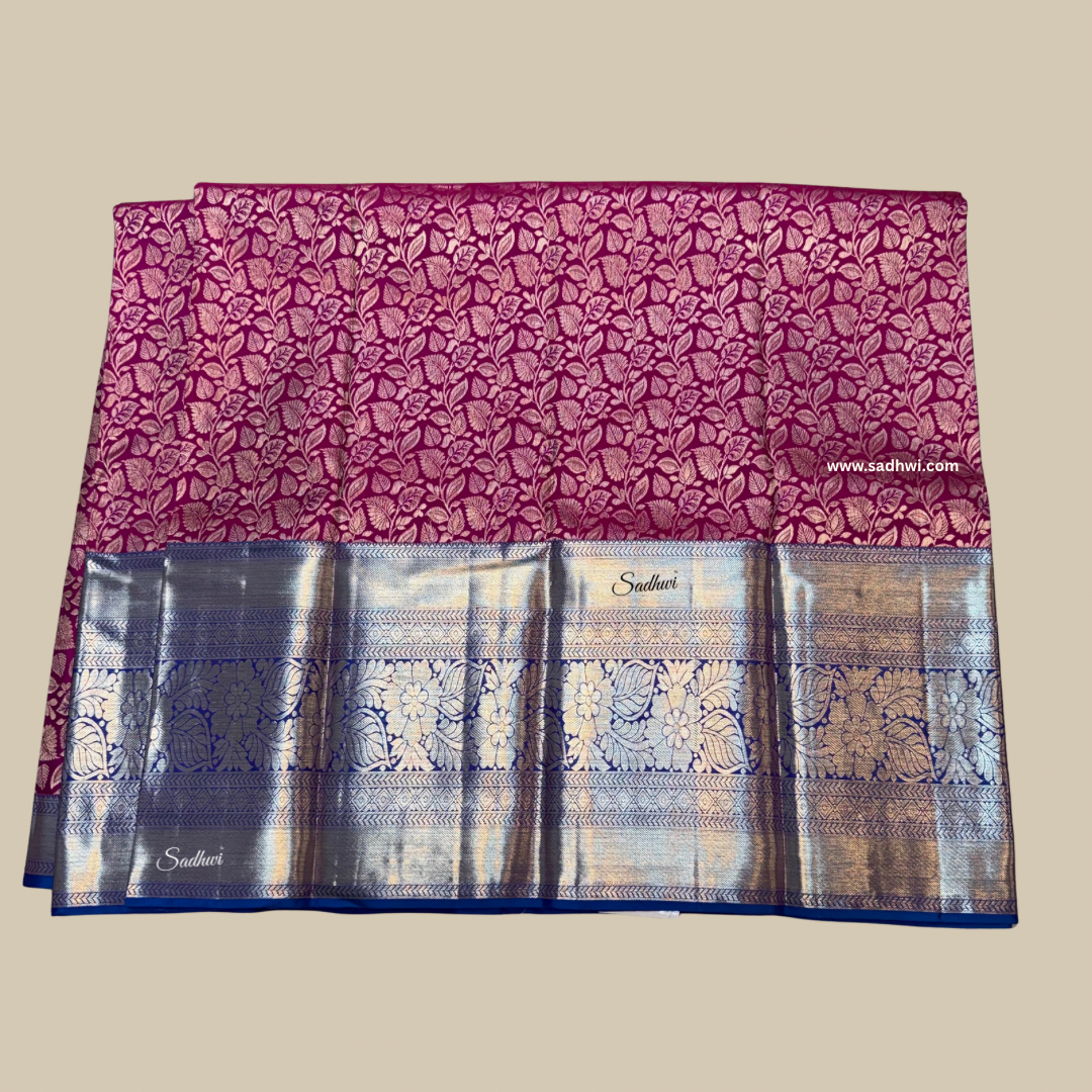 Light Wine With Blue Traditional Pure Kanchipuram Silk Saree