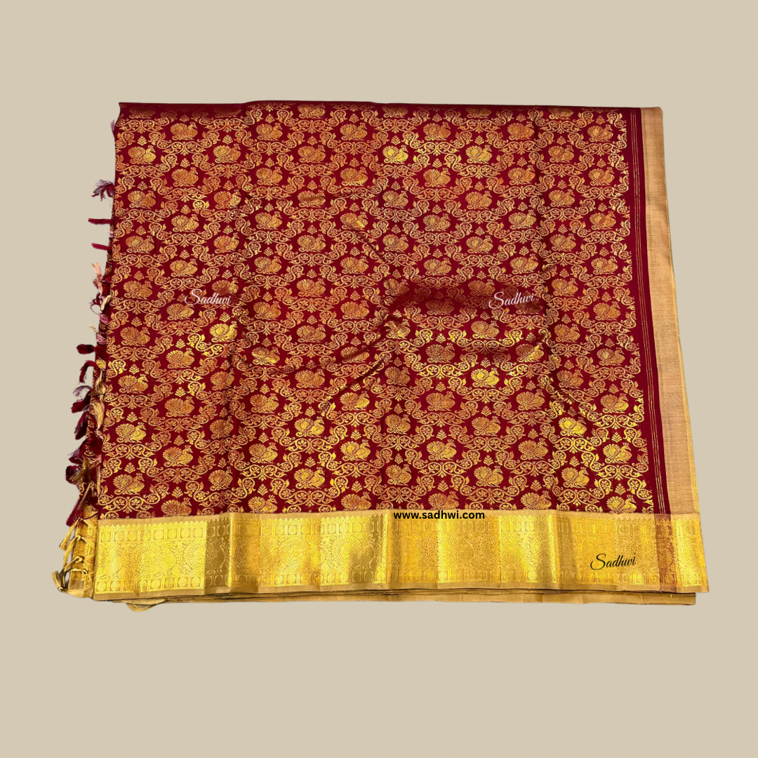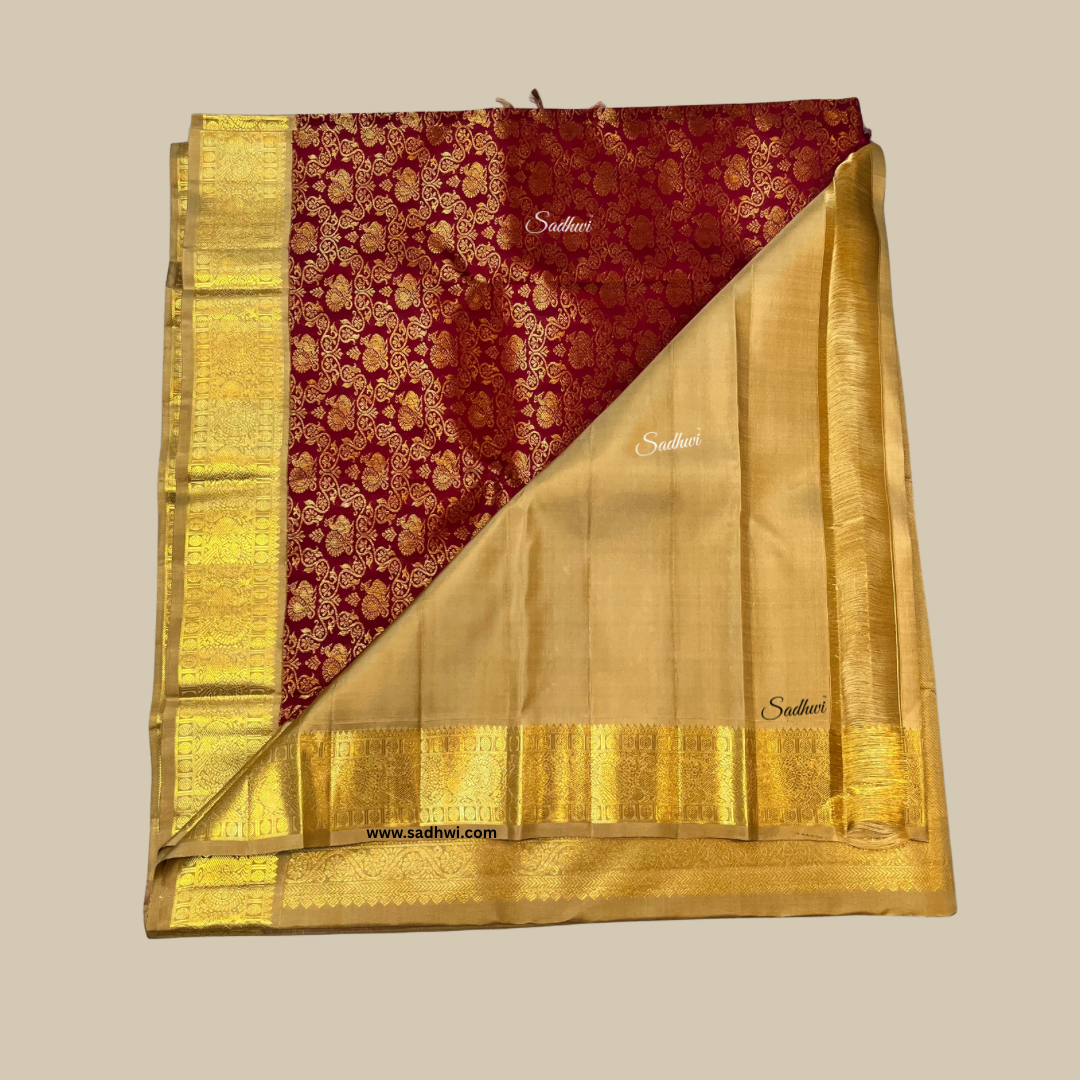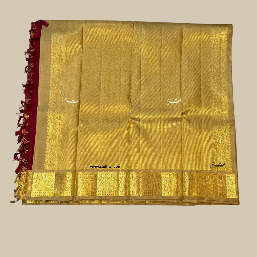 Maroon With Goldish Biscuit Pure Traditional Kanchipuram Silk Saree