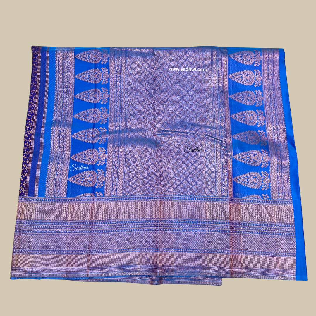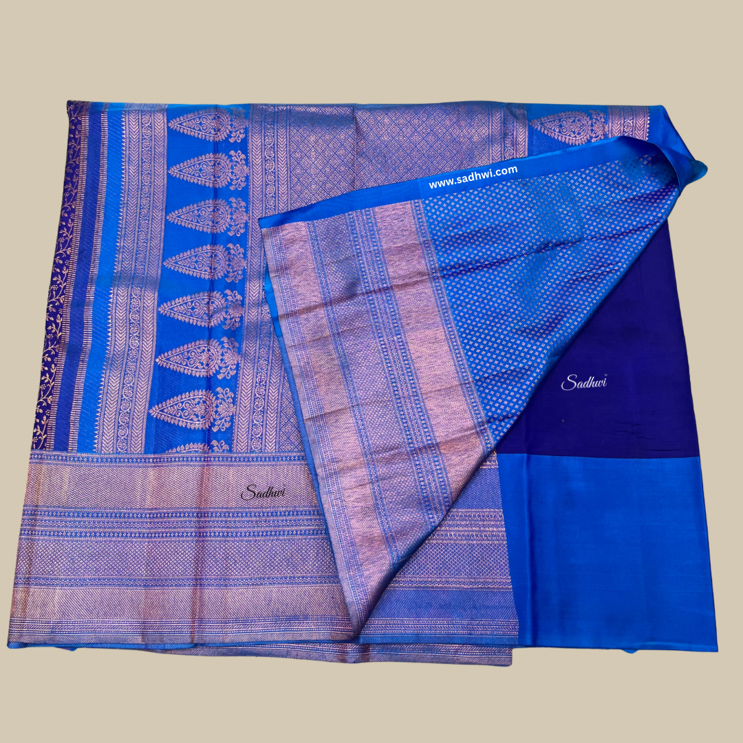 Navy Blue With Light Blue Pure Kanchipuram Silk Saree