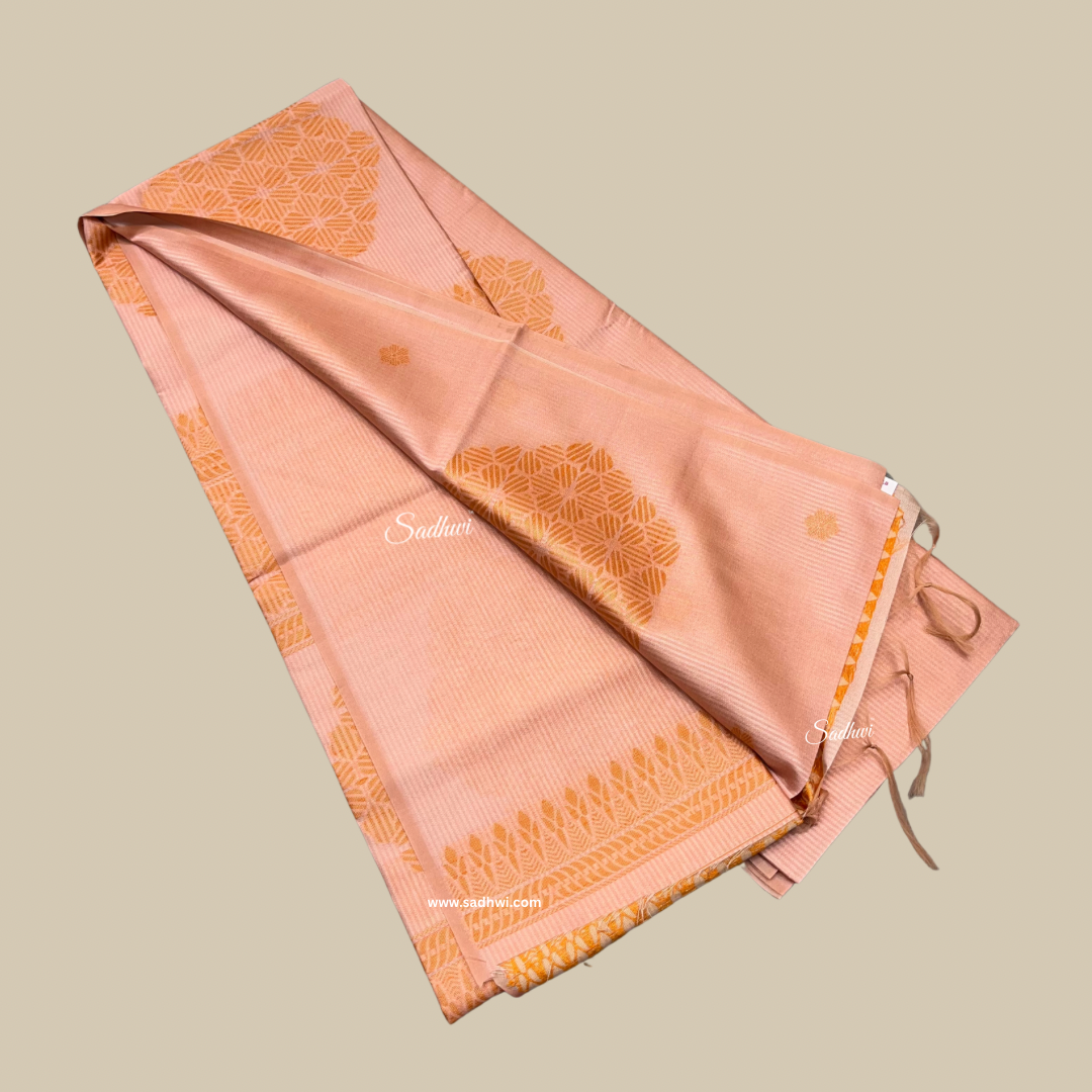 This elegant peach designer Tussar silk saree radiates soft sophistication and timeless beauty. Crafted from richly textured Tussar silk, it features a subtle sheen and natural finish that enhances its refined appeal. Thoughtfully designed with intricate detailing, this saree strikes a perfect balance between traditional charm and contemporary style. Lightweight yet luxurious, it drapes effortlessly, making it an ideal choice for festive occasions, formal events, or elegant daywear. Graceful and versatile, it’s a must-have for those who appreciate understated elegance.