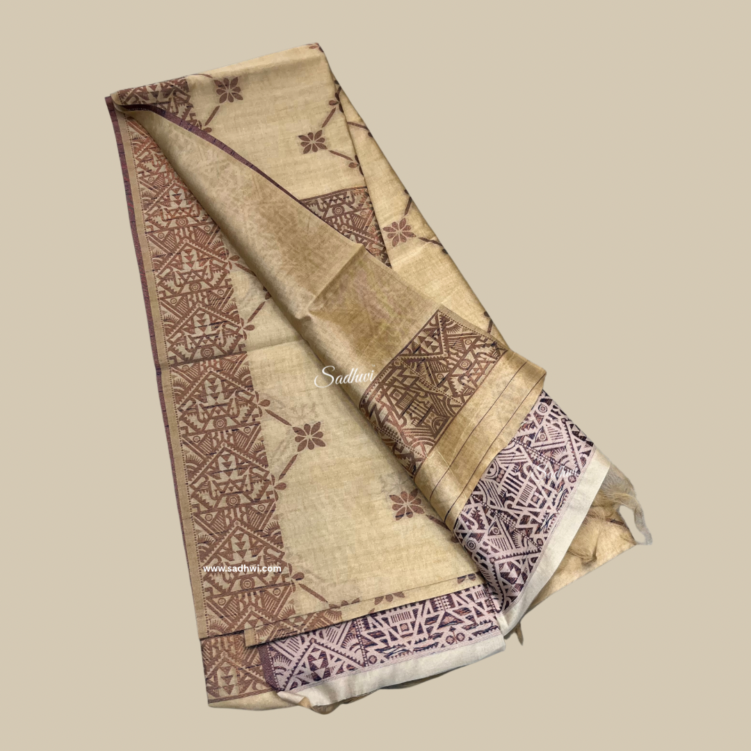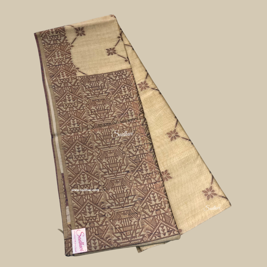 This elegant pista green Tussar silk saree exudes subtle sophistication and timeless charm. Crafted from premium Tussar silk, it features a natural texture with a soft sheen that adds an understated richness to the ensemble. The designer detailing enhances its contemporary appeal, making it perfect for festive gatherings, formal events, or elegant daywear. Lightweight yet luxurious, this saree offers a graceful drape and effortlessly combines traditional aesthetics with modern refinement. A truly versatile piece for the discerning wardrobe.