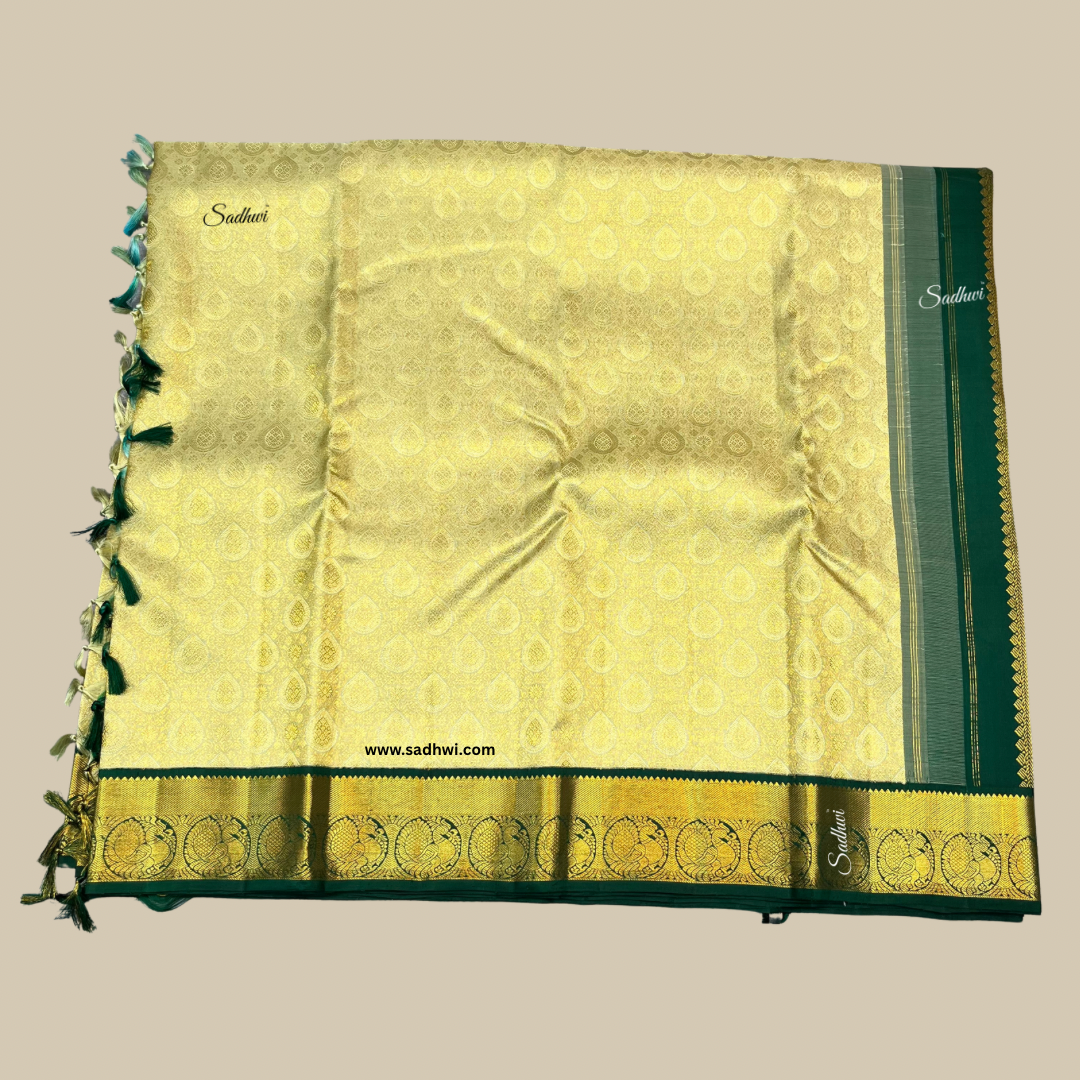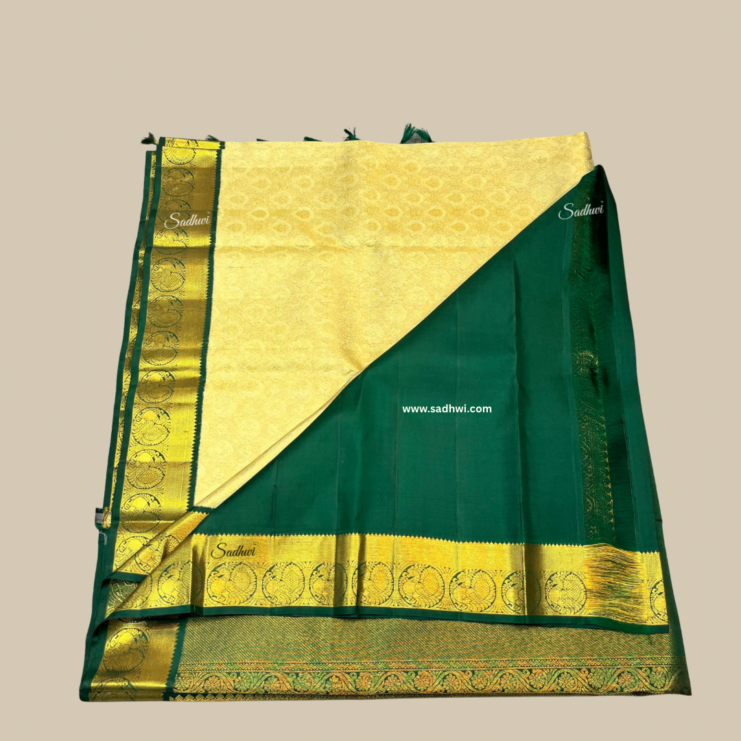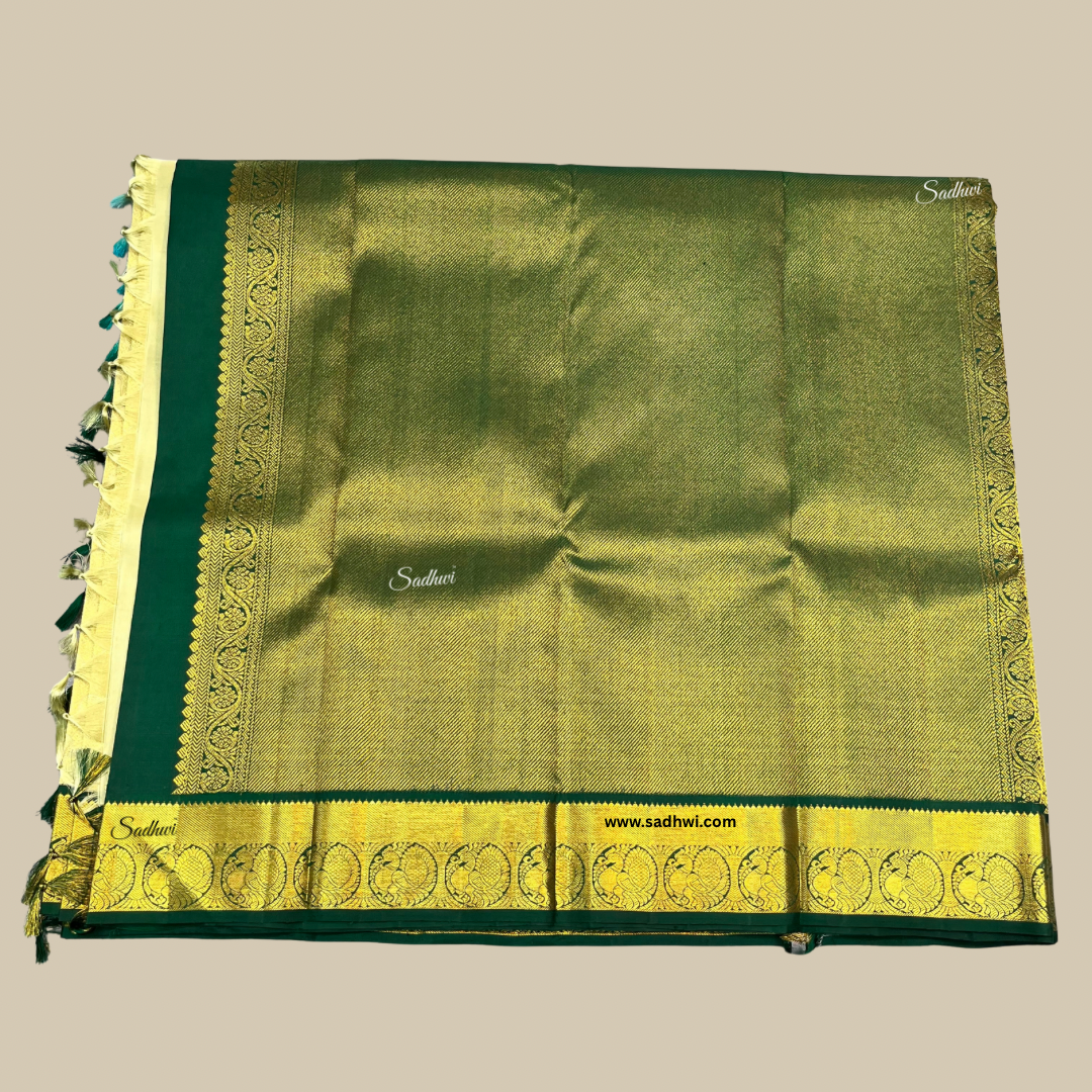 Pista Green With Bottle Green Traditional Pure Kanchipuram Silk Saree