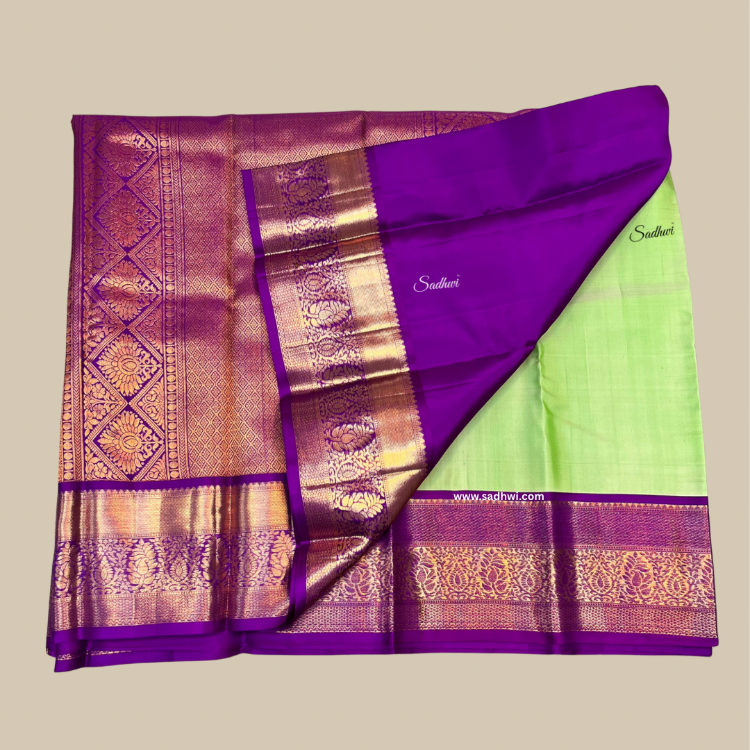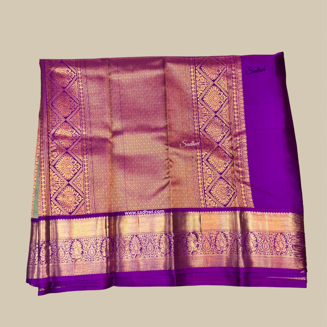 Pista Green With Deep Purple Pure Kanchipuram Silk Saree