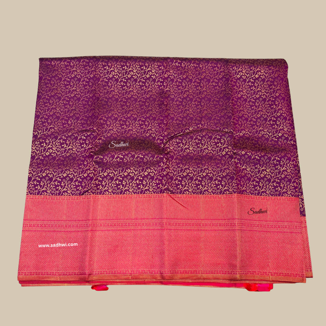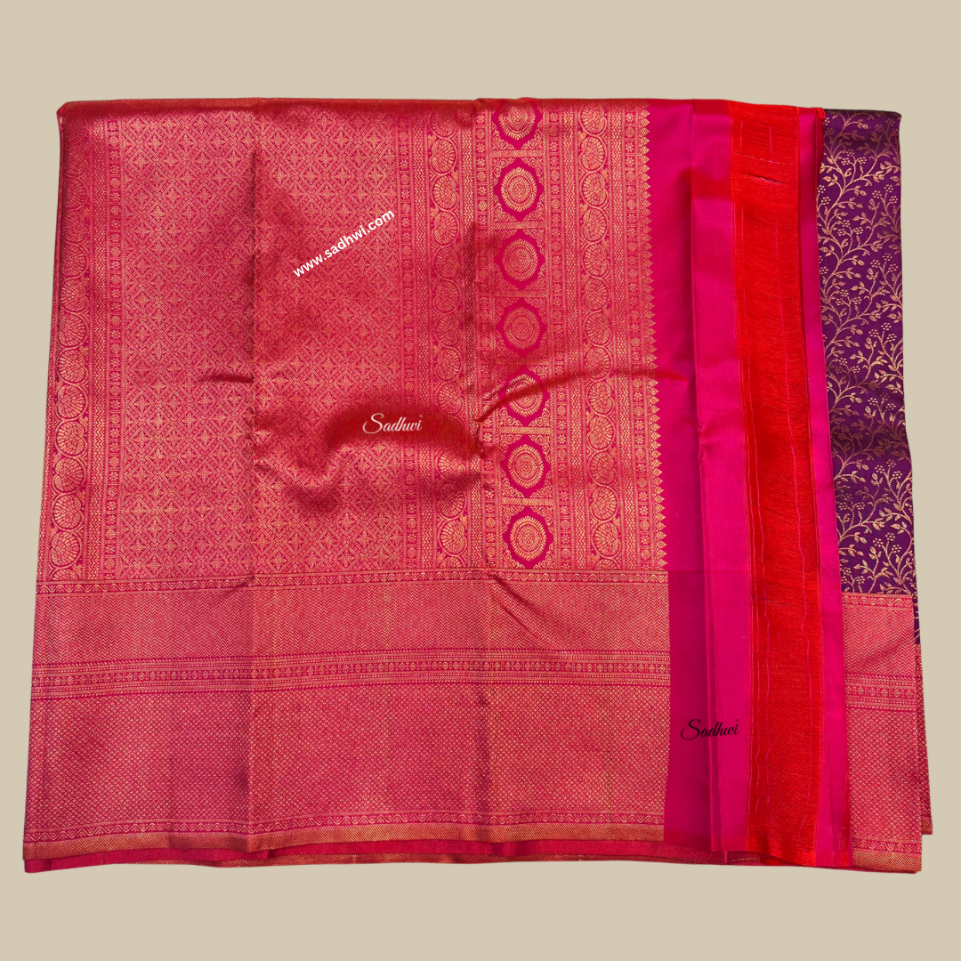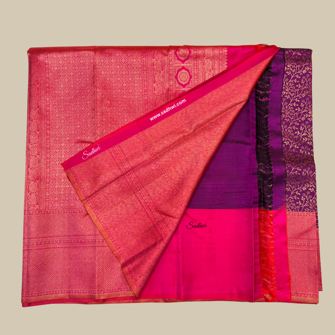 Purple With Reddish Pink Pure Kanchipuram Silk Saree
